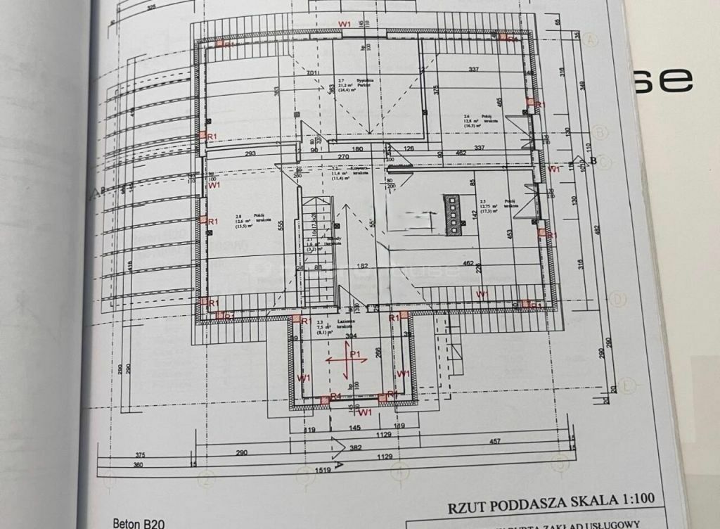Poddasze powierzchnia całkowita 117,9 m²